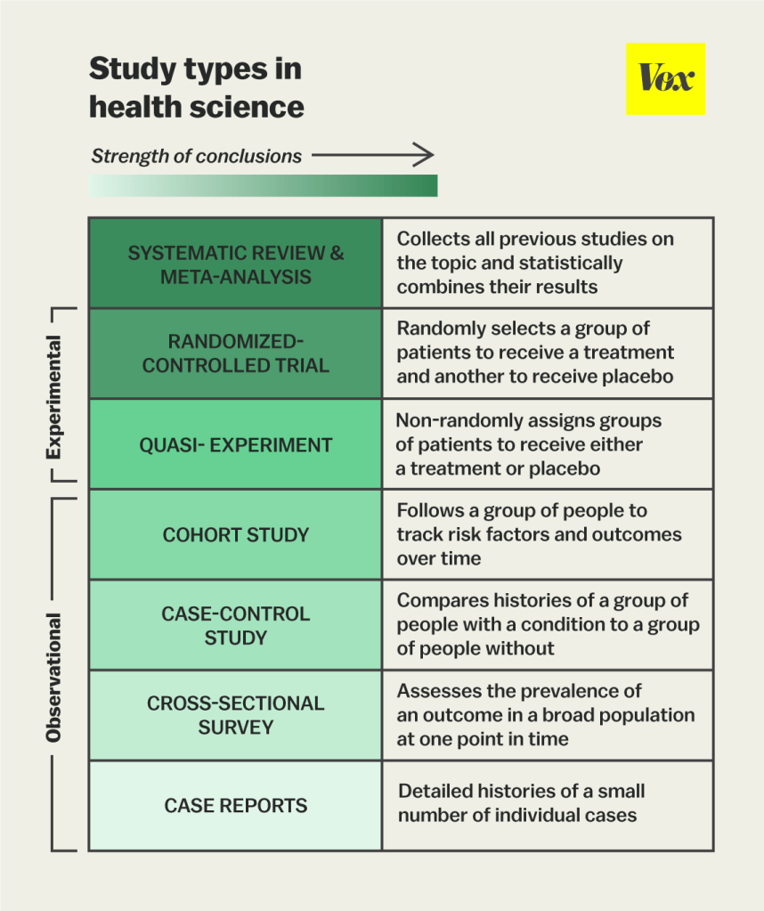 (Source: https://www.vox.com/2015/1/5/7482871/types-of-study-design )