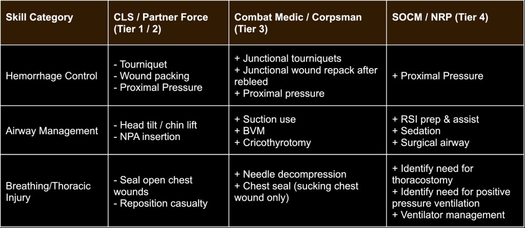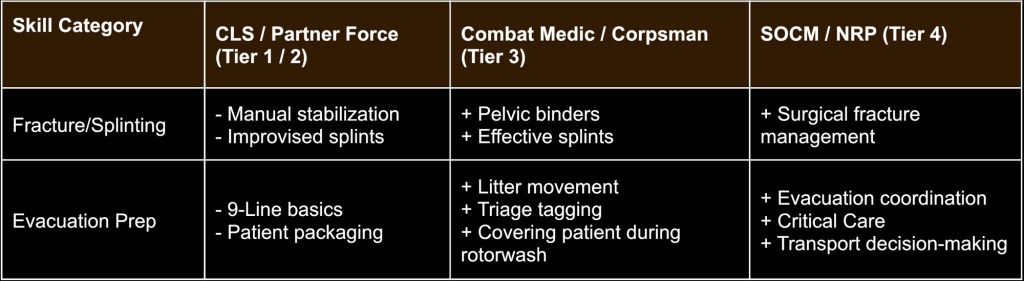 13. Appendix A: TCCC Skills Progression by Training Level