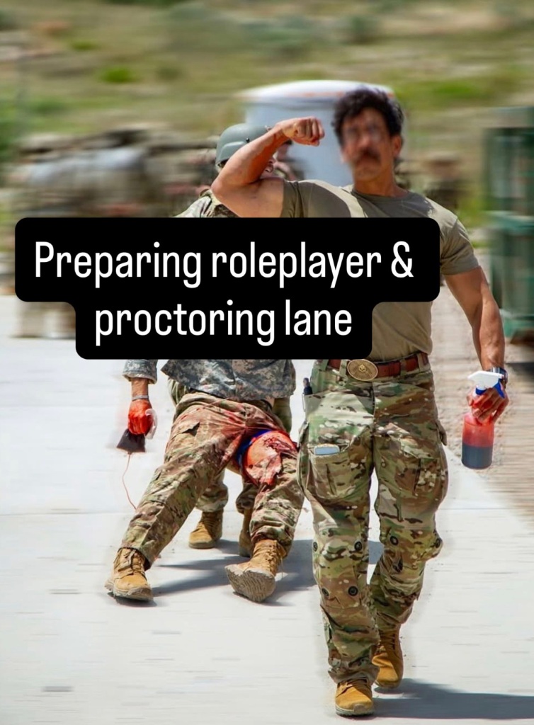 The unwinnable dies-no-matter-what patient, AKA “Kobiyashu Maru”: The intent by instructors to prepare soldiers for the rigors of combat may have good intent, but it doesn’t work. Patients who die no matter what the medic does is of incredibly low value to 1-2 patient TCCC scenarios. This lesson could easily be discussed in a classroom to be driven home without wasting an entire trauma lane’s time on this factor. If we can not convince you not to do this and you are still hellbent on the patient still dying in a single patient TCCC scenario (Not MASCAL), then it must be just one small piece of many learning objectives.