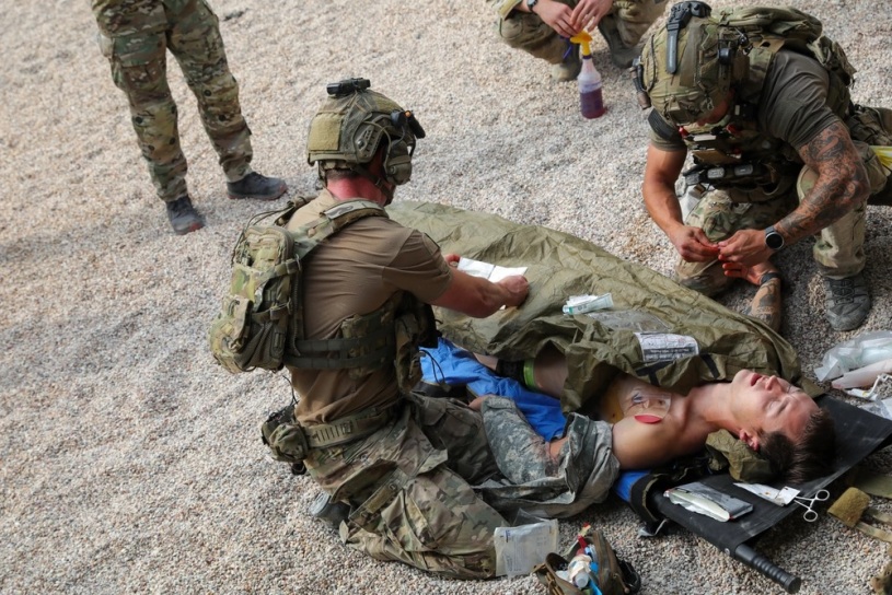 The next step is to intentionally design the wound set of the patient and pre-plan how the patient will trend based on the decisions the medic makes and the actions he takes. Again, it is best to keep this generalized and simple instead of trying to predict everything the medic might do. For example, if the medic does a good job, the patient will trend positively, or the patient will initially respond to one unit of blood and then down trend after a set period of time. While infusing the lane with complexity, however, it is important to remember the critical criteria you put in place and avoid over complicating the lane or creating no-win scenarios. If your purpose is to identify whether or not your medics have the ability to recognize transient responders to resuscitation and continue resuscitating as indicated, your training objectives and critical criteria should reflect that. Don’t let the good idea fairies distract from your intended purpose. Also keep in mind how often injuries occur so we focus on the more likely wounds. Patients should often have extremity and/or junctional bleeding since those are more common causes of death we can work on.5 Eviscerations, burns, fractures, tension pneumothorax and lanes with only internal hemorrhage happen and can be implemented but need to not be the focus, especially in a new medic who hasn’t shown his ability to perform excellent TCCC yet. Most medics know the 2001-20117 study, but there are two new studies showing common injuries more clearly, one specific to Rangers8 and one in special operations.9